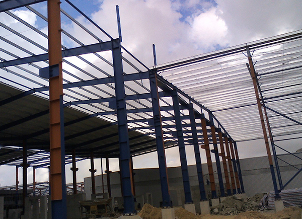 專業生產鋼柱、鋼梁、C型鋼、水平系桿、水平支撐、網架、桁架、膜索結構、天溝、樓承板、夾芯板、巖棉板、保溫棉、鋁箔鋼絲網、840型彩鋼瓦、